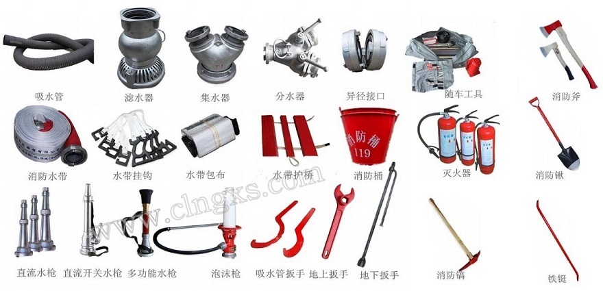 每一臺(tái)消防車都配有一套消防器材 | |||||||