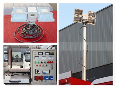 升降照明系統(tǒng) 升降照明系統(tǒng),由發(fā)電機(jī)組供電,通過氣泵系統(tǒng) **桅桿升降,起升高度7.6M,主燈4*1000W使照 明范圍更廣、更遠(yuǎn)。特別適用于夜間作業(yè)。 | ![]() | |